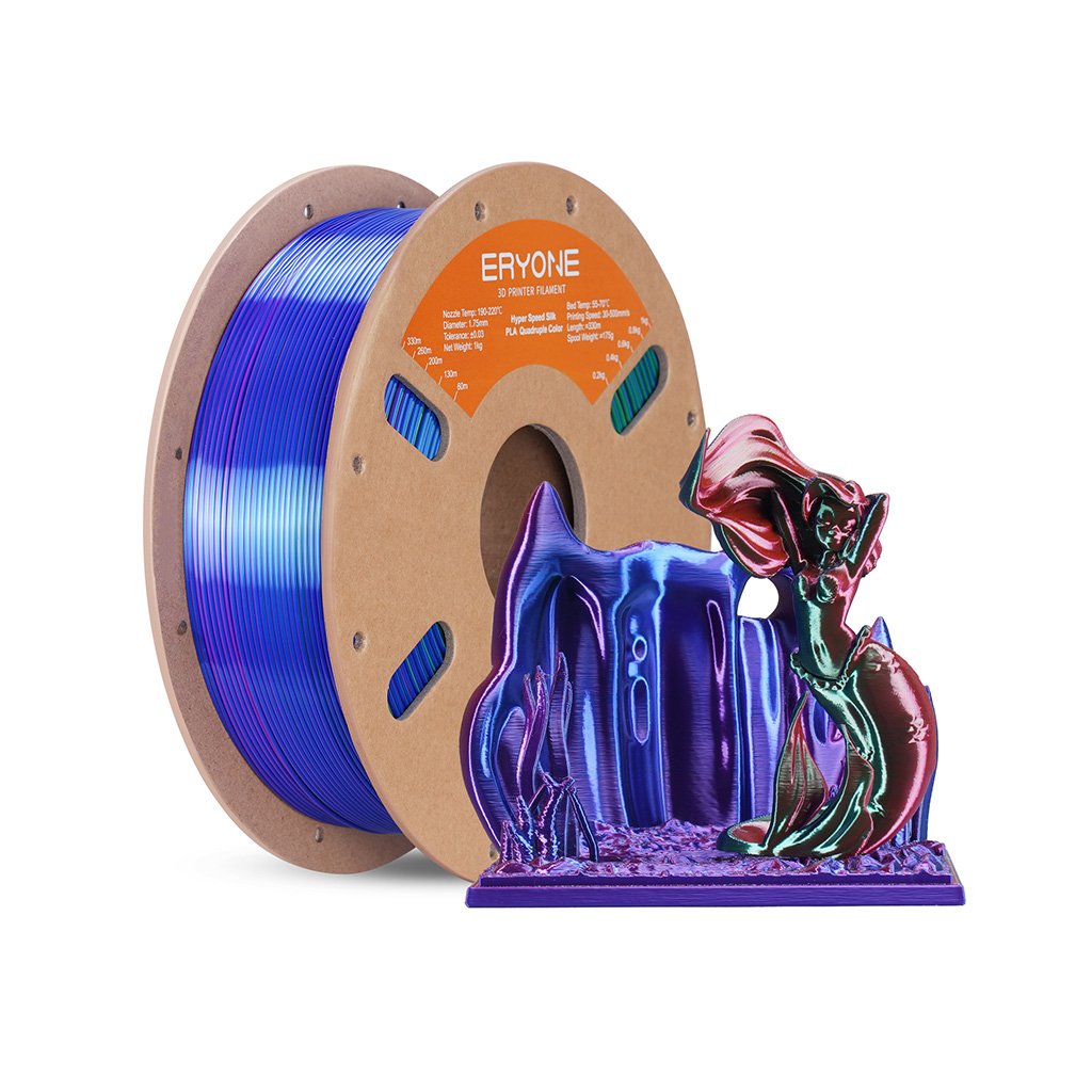 Eryone Evil Pool je nový PLA Silk filament pro 3D tisk, který vyniká čtyřbarevnou kombinací barev: červená, modrá, fialová a zelená. Díky hedvábnému lesku a přesnosti 1,75 mm ± 0,03 mm je vhodný pro tisk dekorací, designových projektů a vizuálně atraktivních modelů.