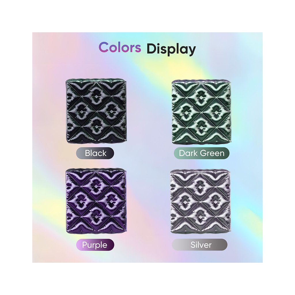 - Barvy: černá, fialová, stříbrná, tmavě zelená