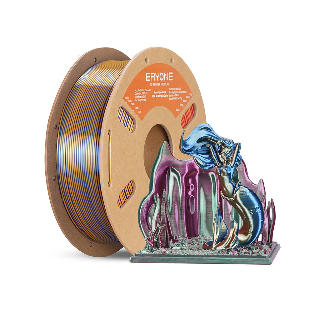 Eryone Splendid Quartet je prémiový PLA Silk filament pro 3D tisk, který vyniká čtyřbarevnou kombinací barev: modrá, červená, žlutá, zelená. Díky hedvábnému lesku a přesnosti 1,75 mm ± 0,03 mm je vhodný pro tisk dekorací, uměleckých projektů a vizuálně atraktivních modelů.
