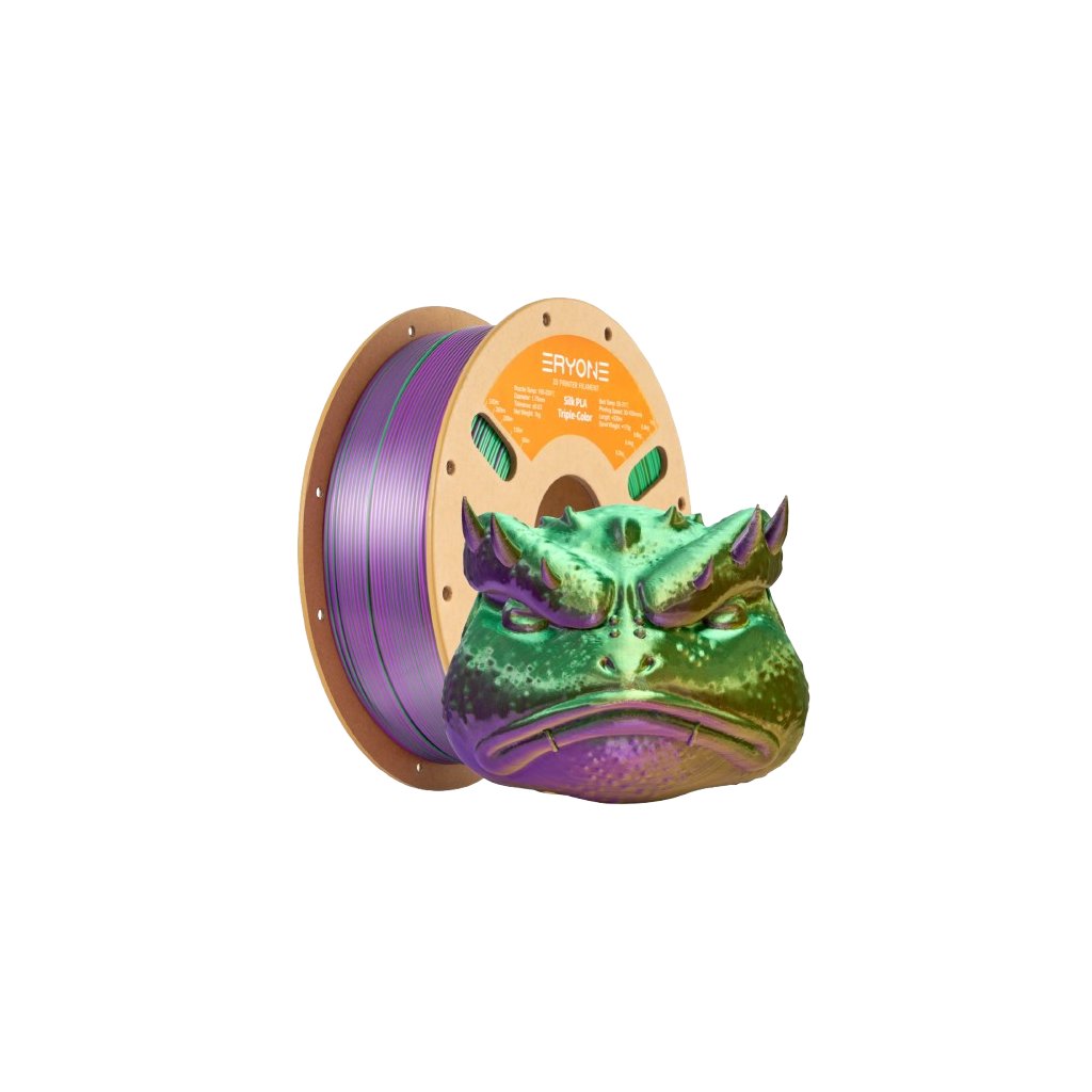 ERYONE Triple-Color Silk PLA filament přináší kombinaci tří atraktivních barev – zlaté, zelené a fialové – v jednom vláknu. Tento efekt vytváří působivé barevné přechody při tisku, ideální pro dekorativní, designové i profesionální modely. Filament je vyroben z kvalitního PLA s vysokou rozměrovou přesností a snadnou tisknutelností.