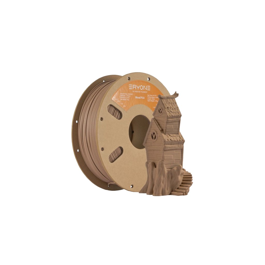 Eryone PLA Wood Deep je inovativní 3D tiskový filament, který kombinuje klasické PLA s jemnými dřevěnými vlákny. Díky tomu nabízí nejen přírodní vzhled a texturu, ale také příjemnou vůni dřeva během tisku. Ideální volba pro každého, kdo chce vytvářet originální dekorace, makety nebo stylové modely s autentickým dřevěným efektem.