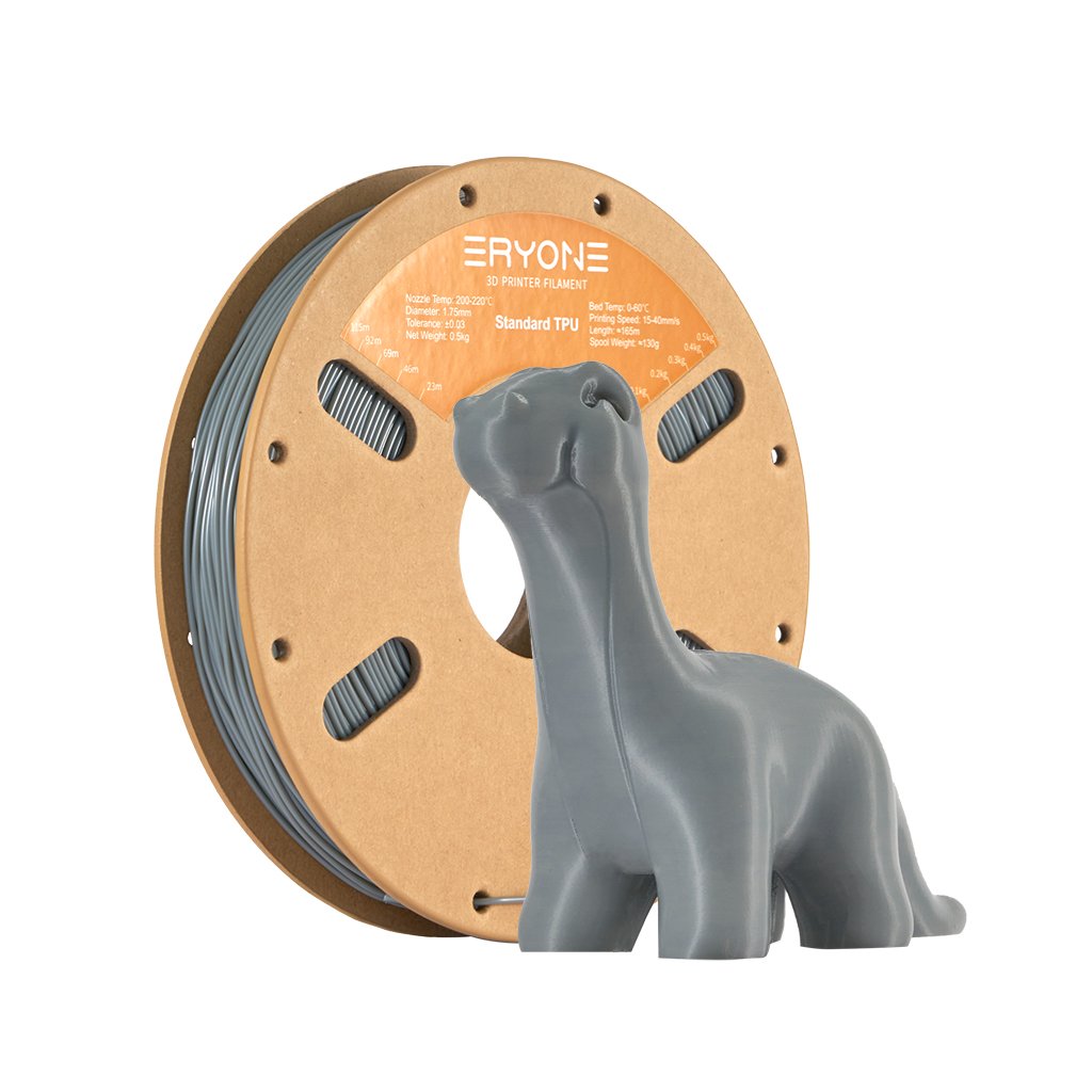 Eryone TPU šedý filament je vysoce kvalitní termoplastický polyuretan určený pro 3D tisk flexibilních a trvanlivých dílů. Díky své tvrdosti 95A Shore je dostatečně pružný pro absorpci nárazů, ale zároveň dostatečně pevný pro zachování tvaru. Filament se snadno tiskne i na základních 3D tiskárnách a poskytuje skvělou přilnavost k podložce.