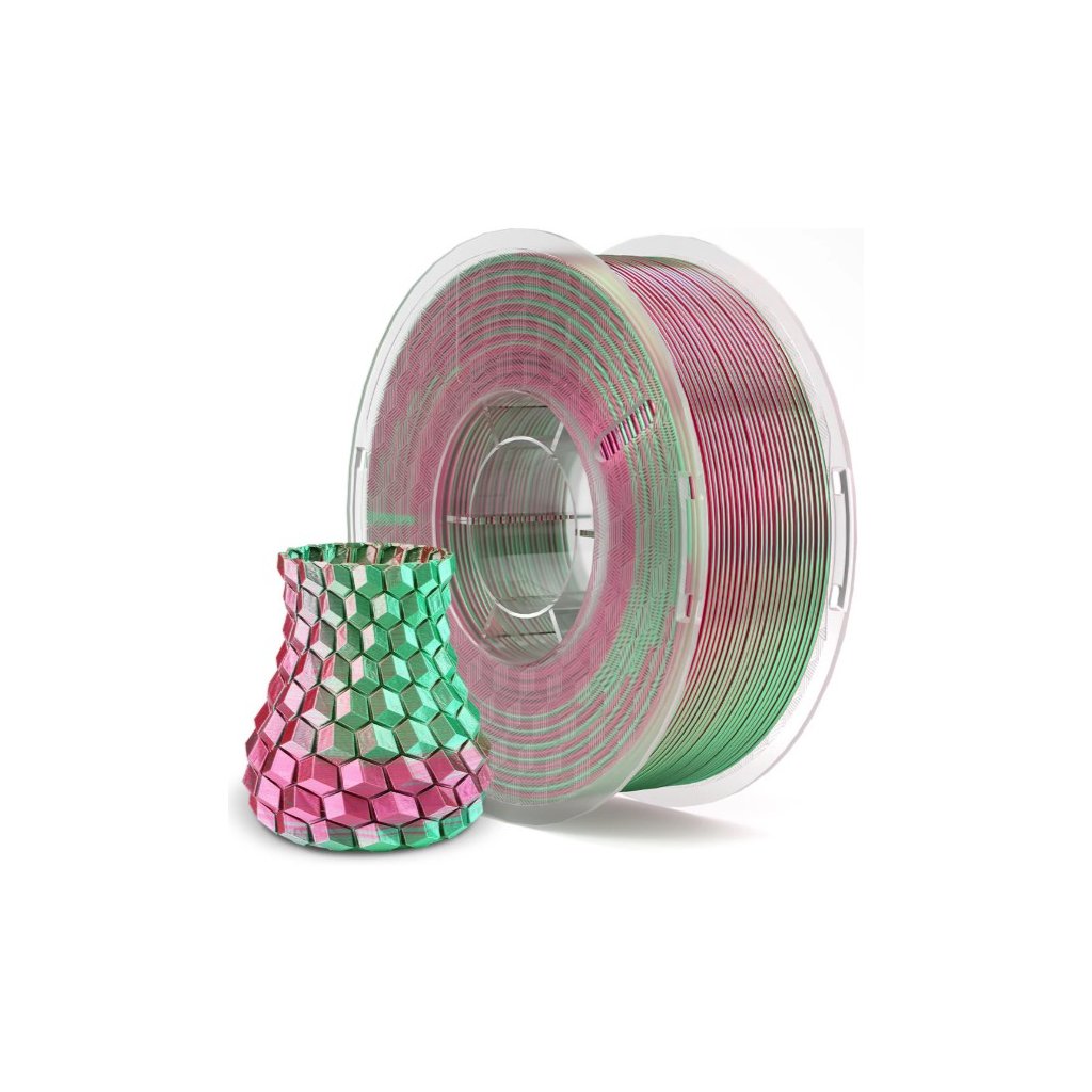 Elegoo PLA Silk Green-Red je prémiový PLA filament s hedvábným leskem a jedinečným plynulým gradientem mezi zelenou a červenou. Tento barevný efekt dodává výtiskům elegantní a exkluzivní vzhled, který se mění podle úhlu pohledu. Perfektní volba pro dekorativní modely, sochy, umělecké projekty i designové prototypy.