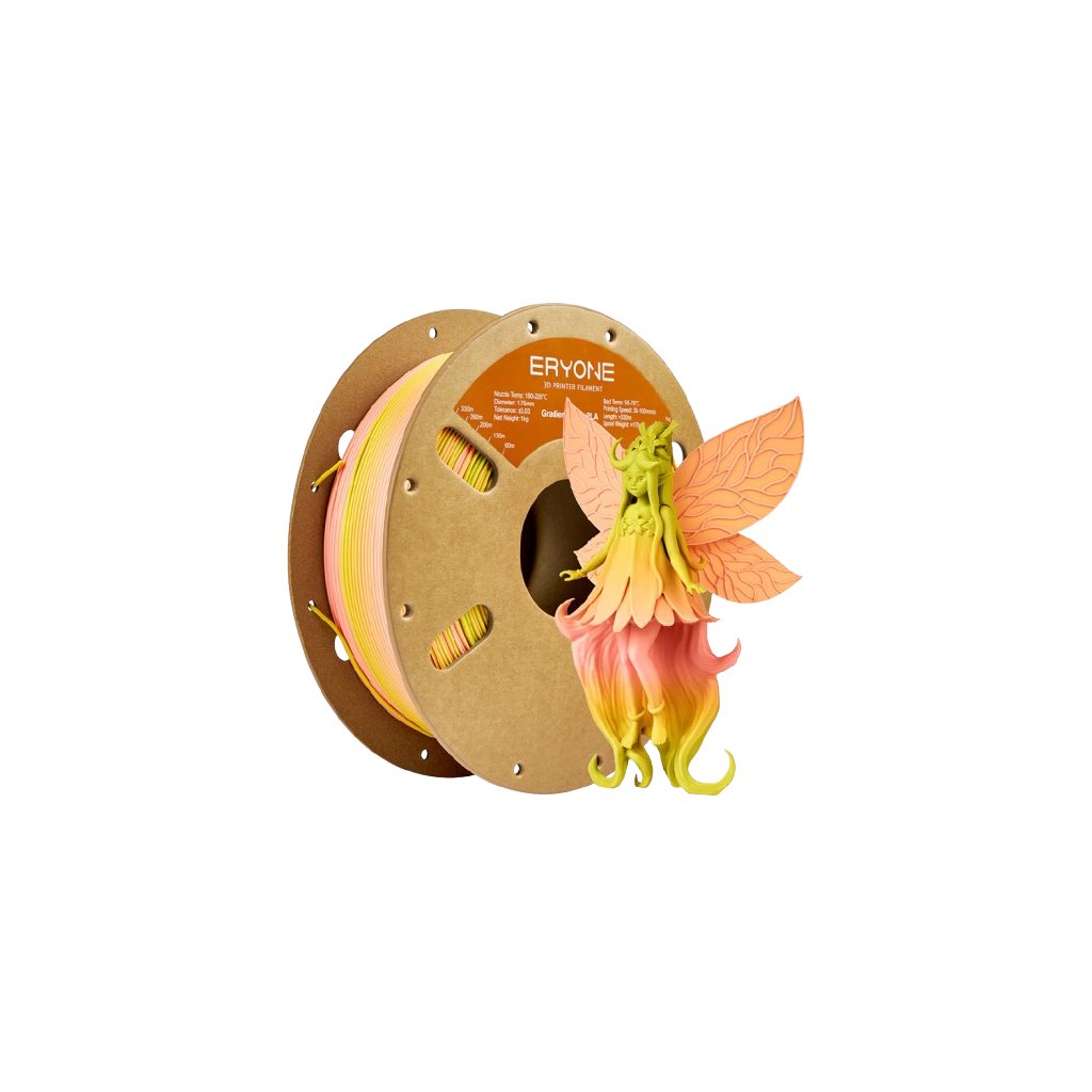 Eryone PLA Matte Dual-Color Pink-Yellow-Green je prémiový PLA filament s matným povrchem a jedinečným barevným přechodem mezi růžovou, žlutou a zelenou. Tento speciální efekt dodává modelům elegantní a moderní vzhled, který je ideální pro umělecké a dekorativní výtisky.