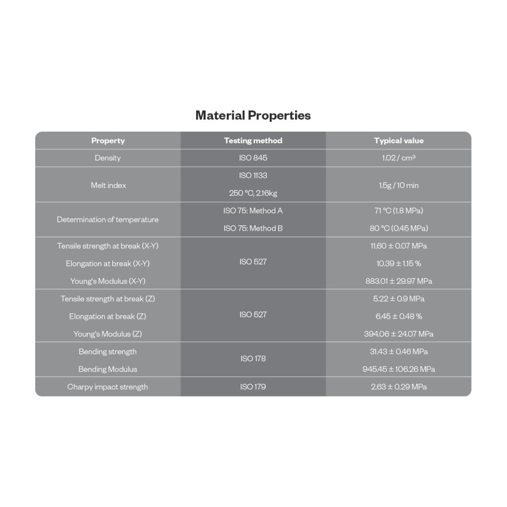 - Lehký a pevný: Snižuje hmotnost výtisků až o 50 % ve srovnání s běžným ASA.