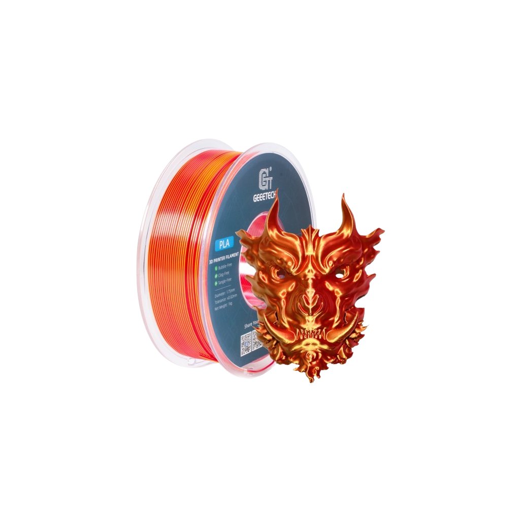 Filament PLA SILK Dual Color od Geeetech je ideální pro všechny, kteří hledají způsob, jak vytvářet výtisky s dvoubarevným efektem a hedvábně lesklým povrchem. Tento materiál je navržen tak, aby poskytl vysokou estetiku a kvalitu povrchu vašim 3D výtiskům. PLA SILK Dual Color je ideální pro umělecké a deseignové projekty, kde je vzhled klíčovým prvkem.