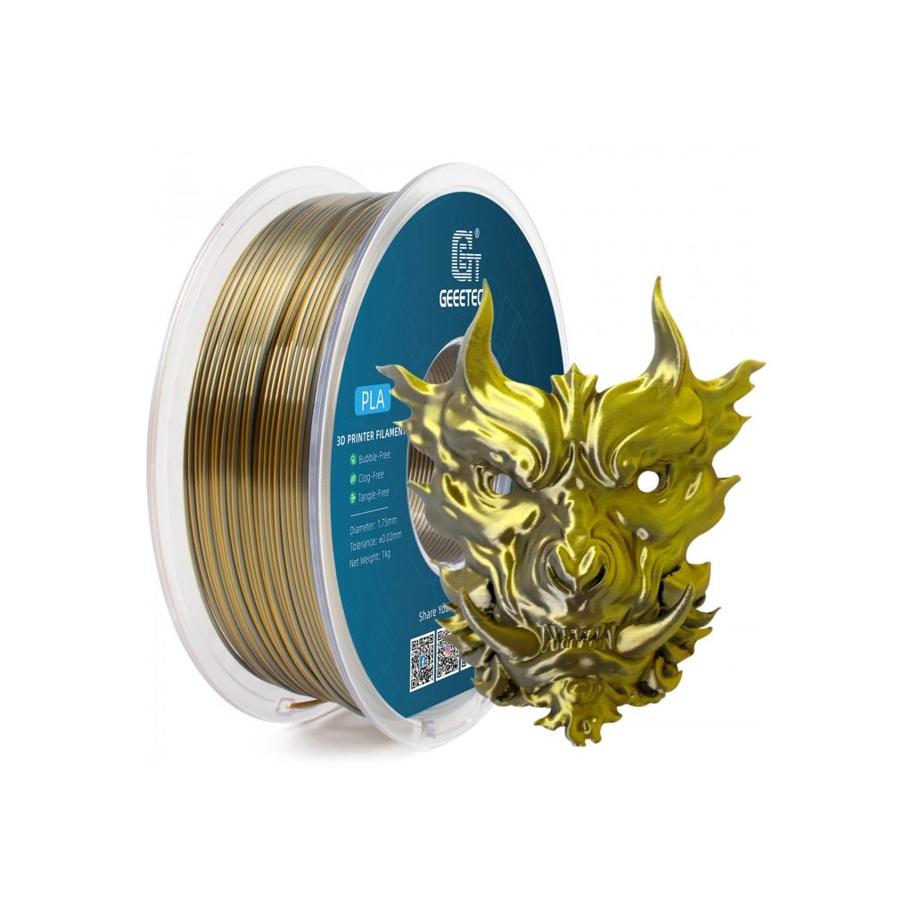 Filament PLA SILK Dual Color od Geeetech je ideální pro všechny, kteří hledají způsob, jak vytvářet dvoubarevné výtisky a hedvábně lesklým povrchem. Tento materiál je navržen tak, aby poskytl důraz na kvalitu povrchu Vašim 3D výtiskům. PLA SILK Dual Color je ideální pro umělecké a designové projekty, kde je vzhled klíčový.